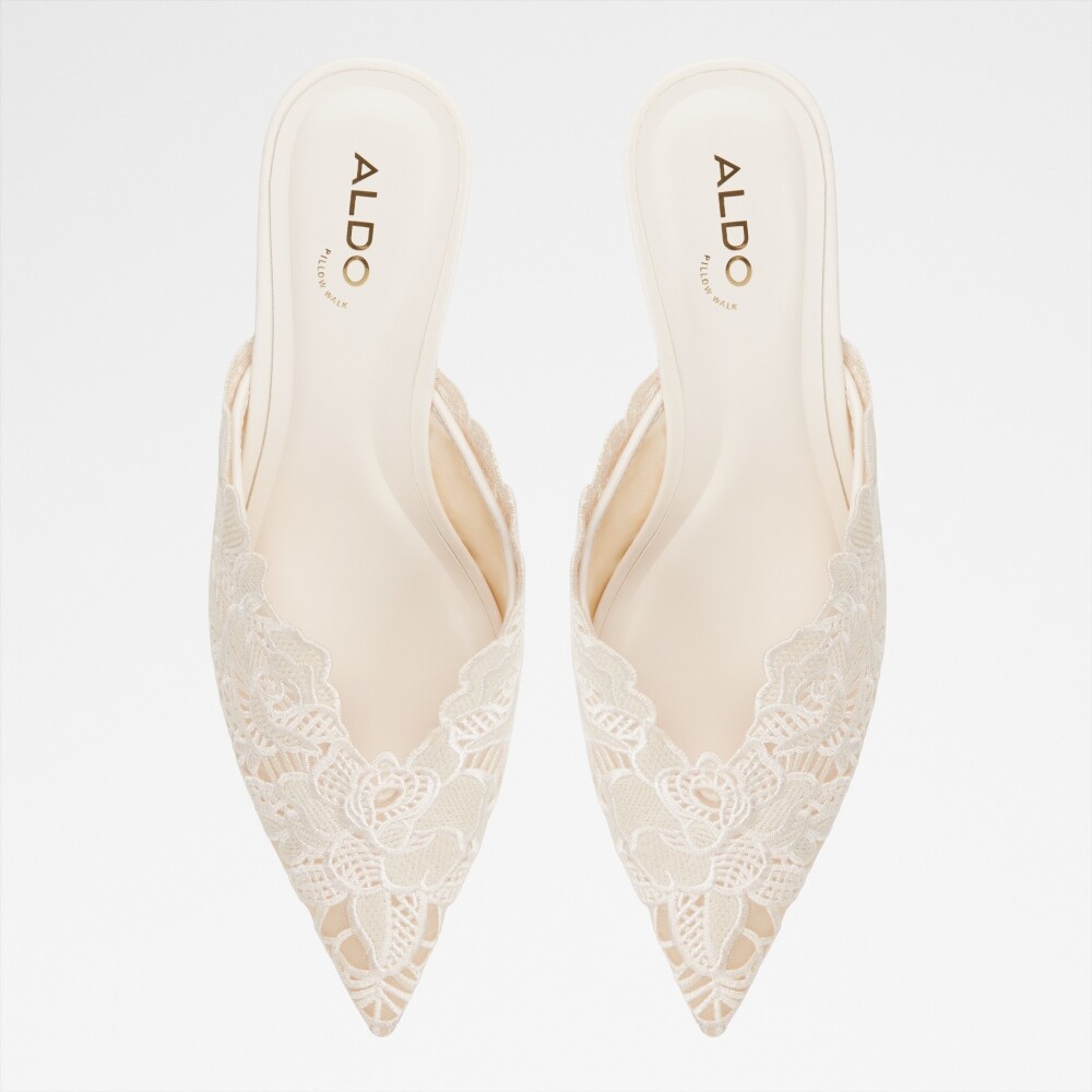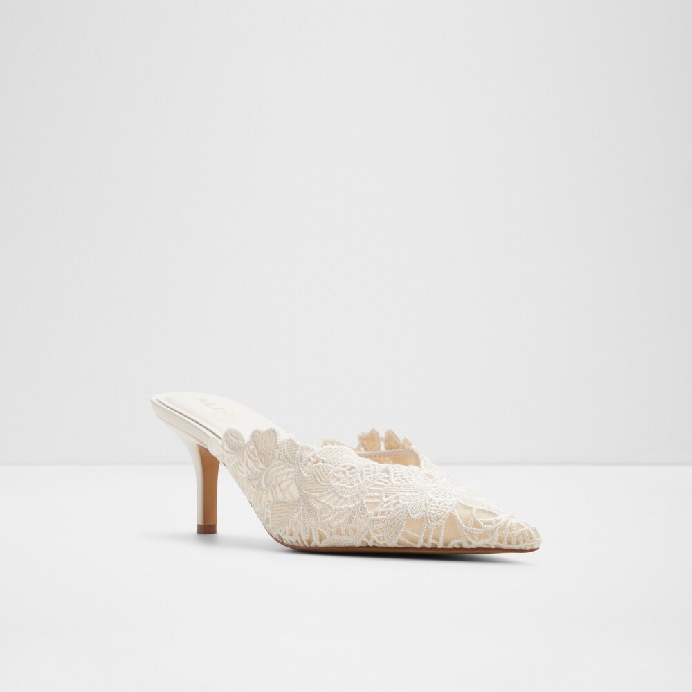 ● 法式復古鏤空蕾絲細高跟穆勒鞋