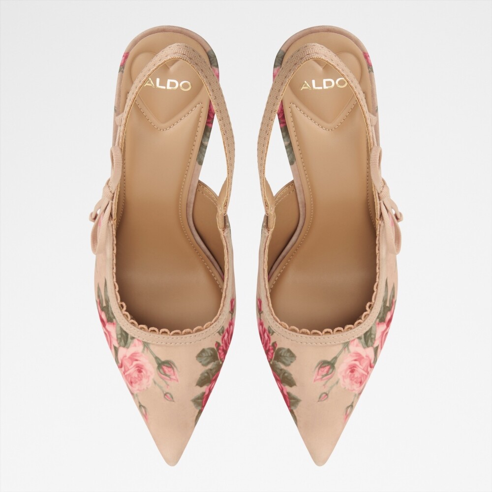 ● 時尚溫柔花卉尖頭後空高跟鞋面