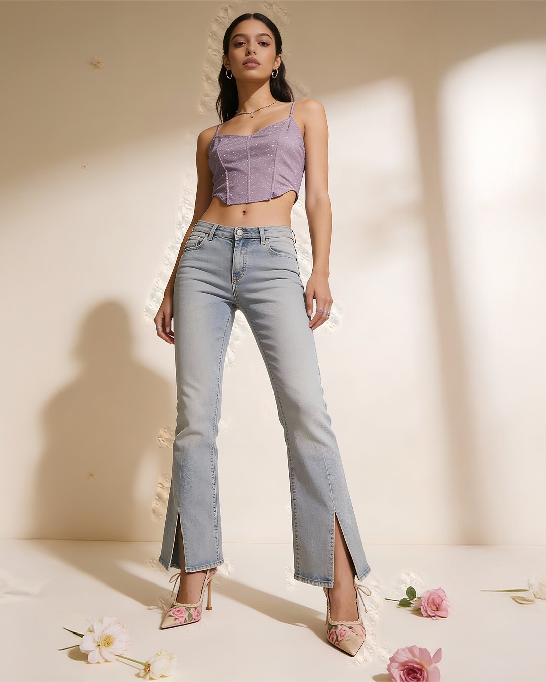 ● 時尚溫柔花卉尖頭後空高跟鞋面