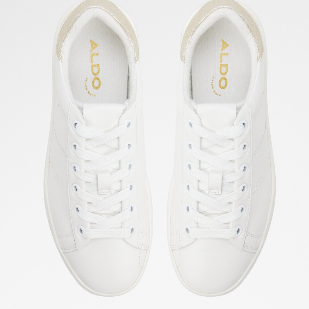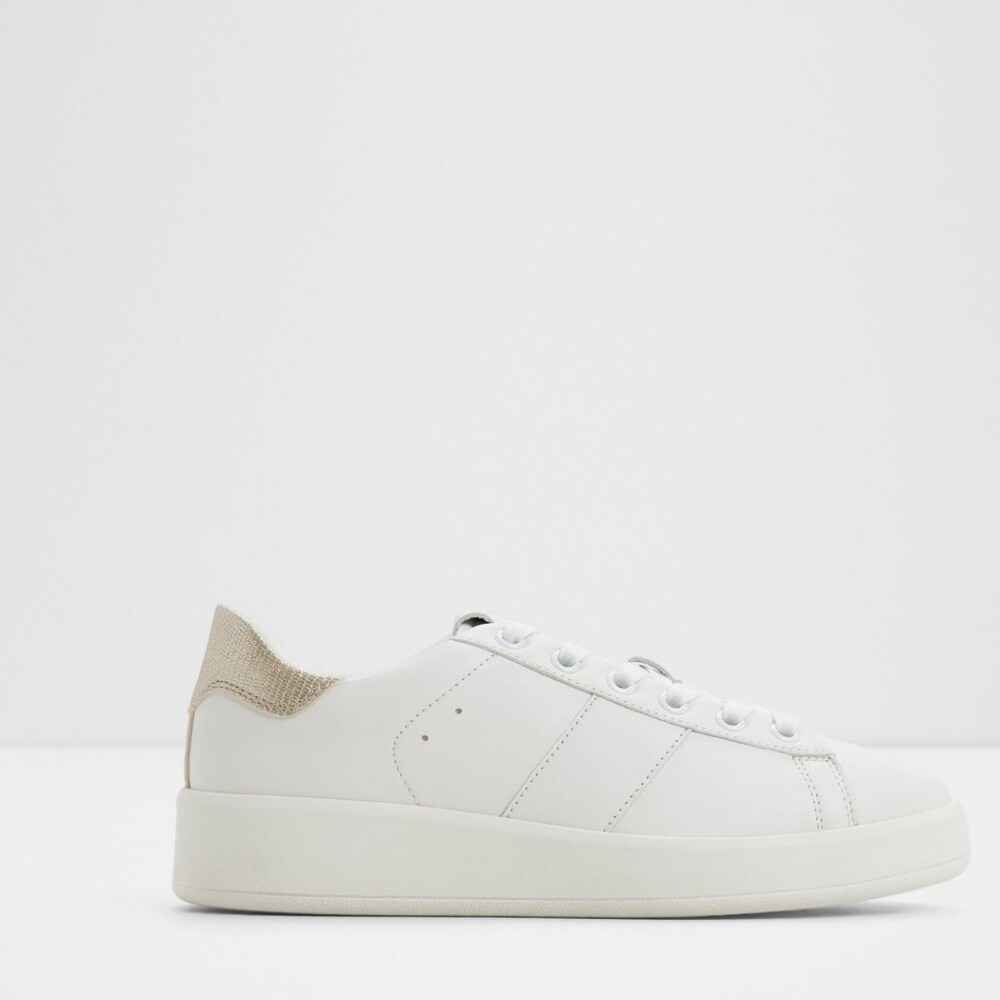 ● 時尚簡約設計綁帶休閒鞋,整體以純白鞋面為基底