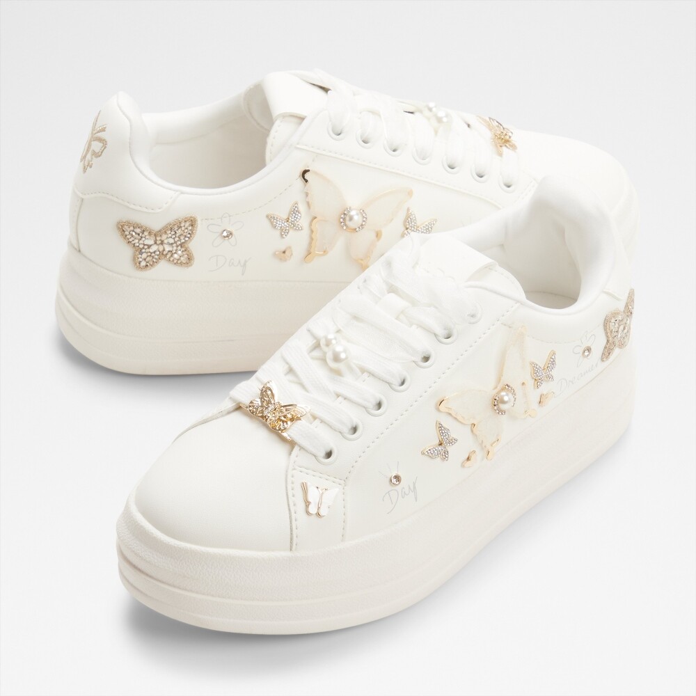 ● 時尚夢幻水鑽蝴蝶厚底小白鞋,夢幻與甜美結合