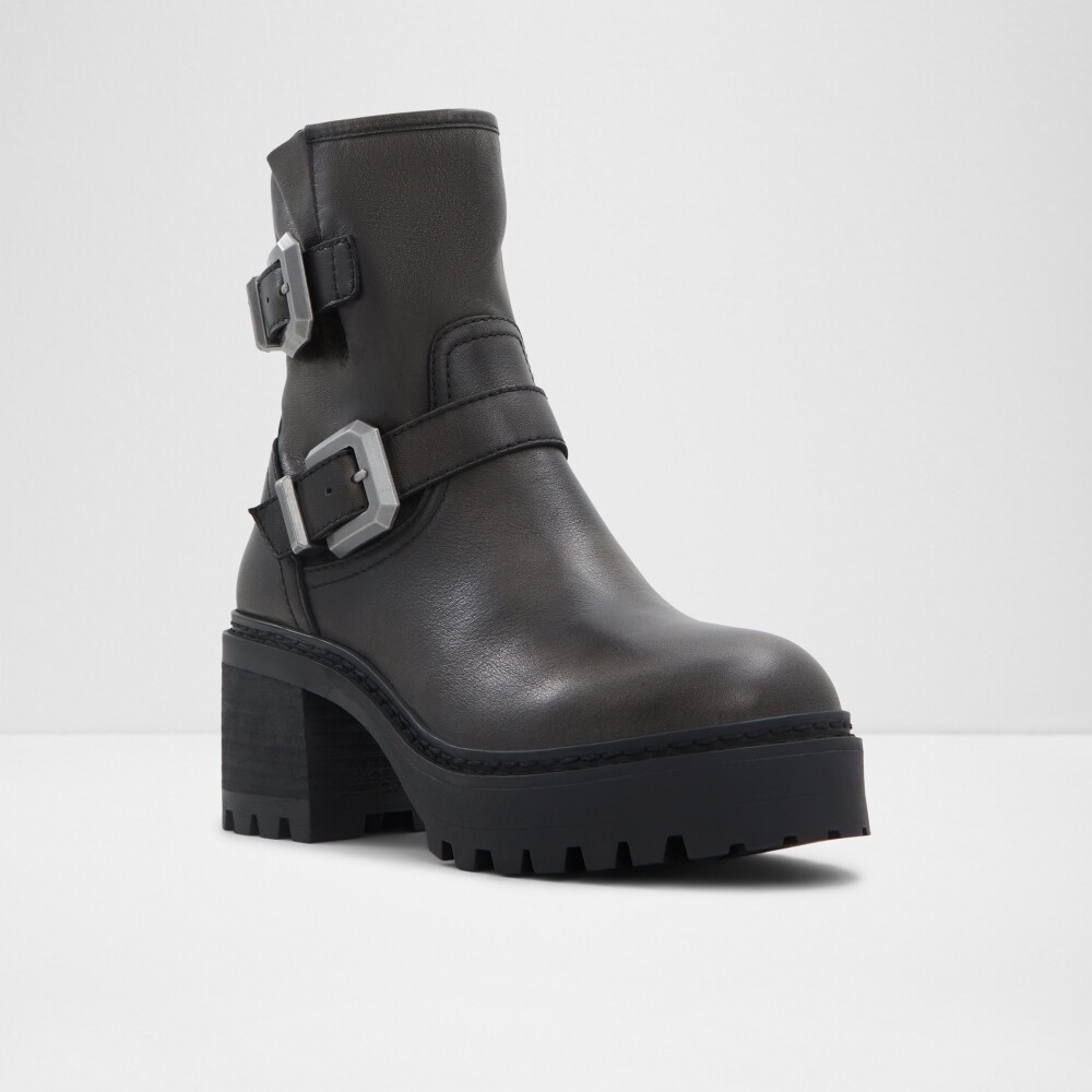 ● 時尚雙扣帶粗跟厚底短靴