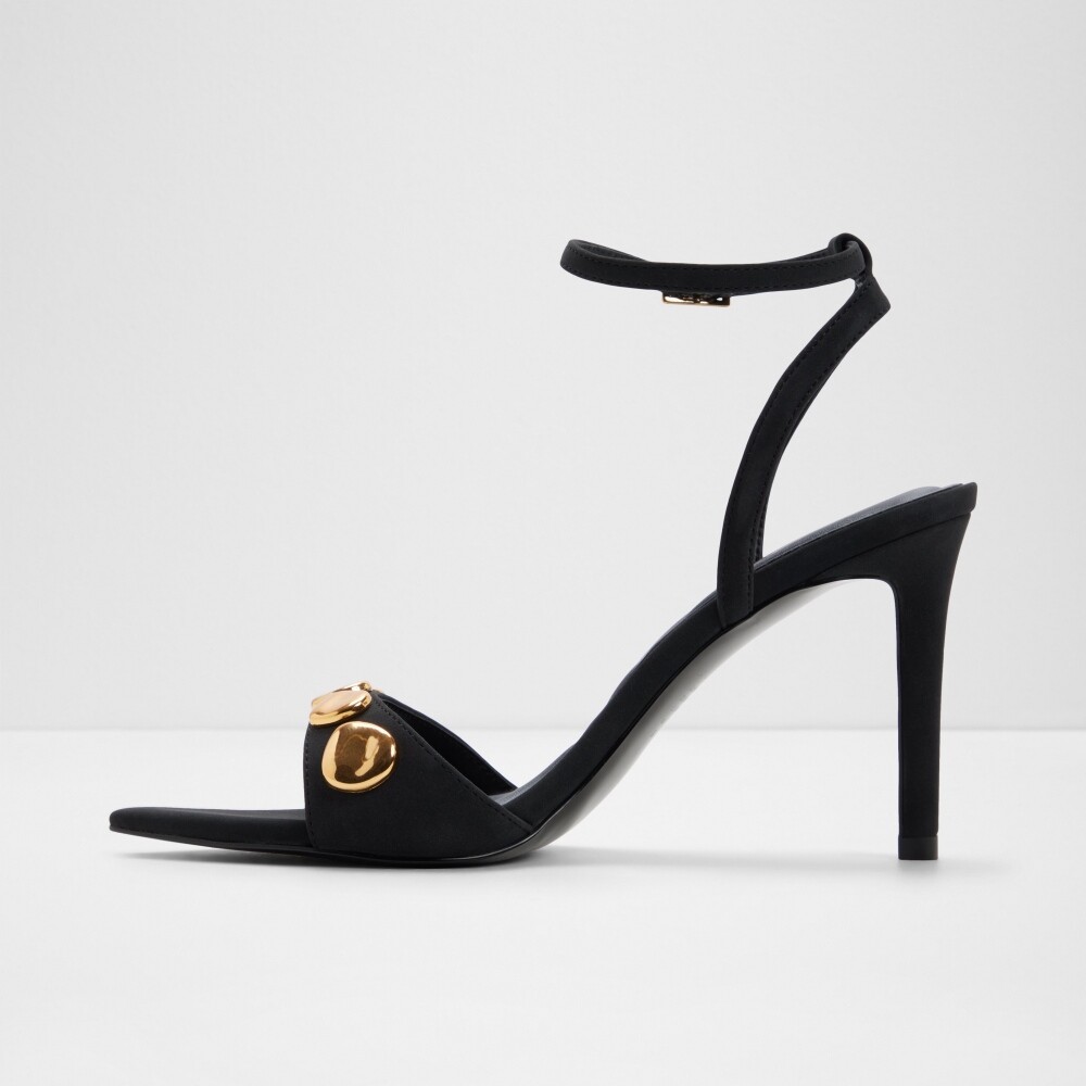 ● 時尚金屬飾扣尖頭繞踝涼跟鞋