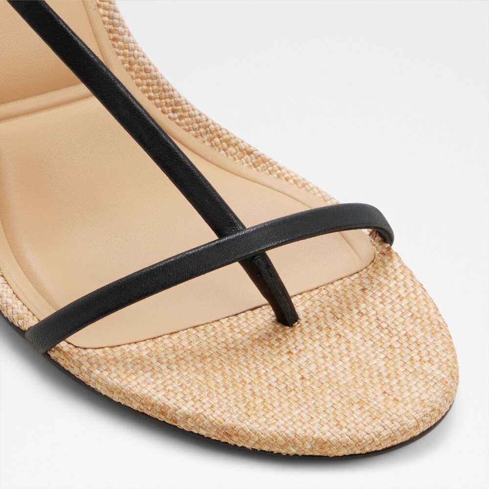 ● 氣質草編拼接細帶繞踝高跟涼鞋,