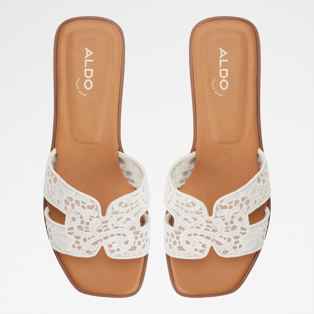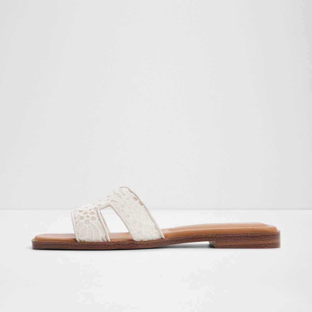 ● 優雅蕾絲寬帶平底拖鞋,簡約白色調清新百搭