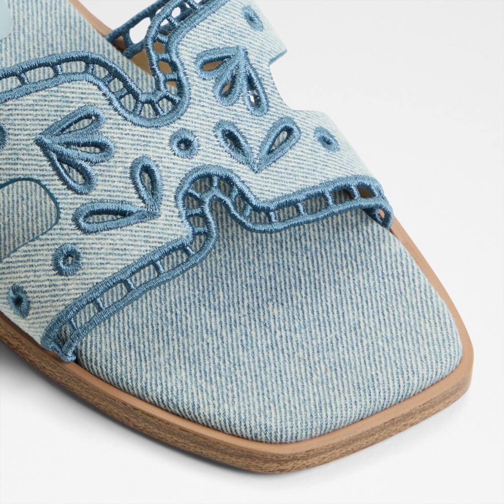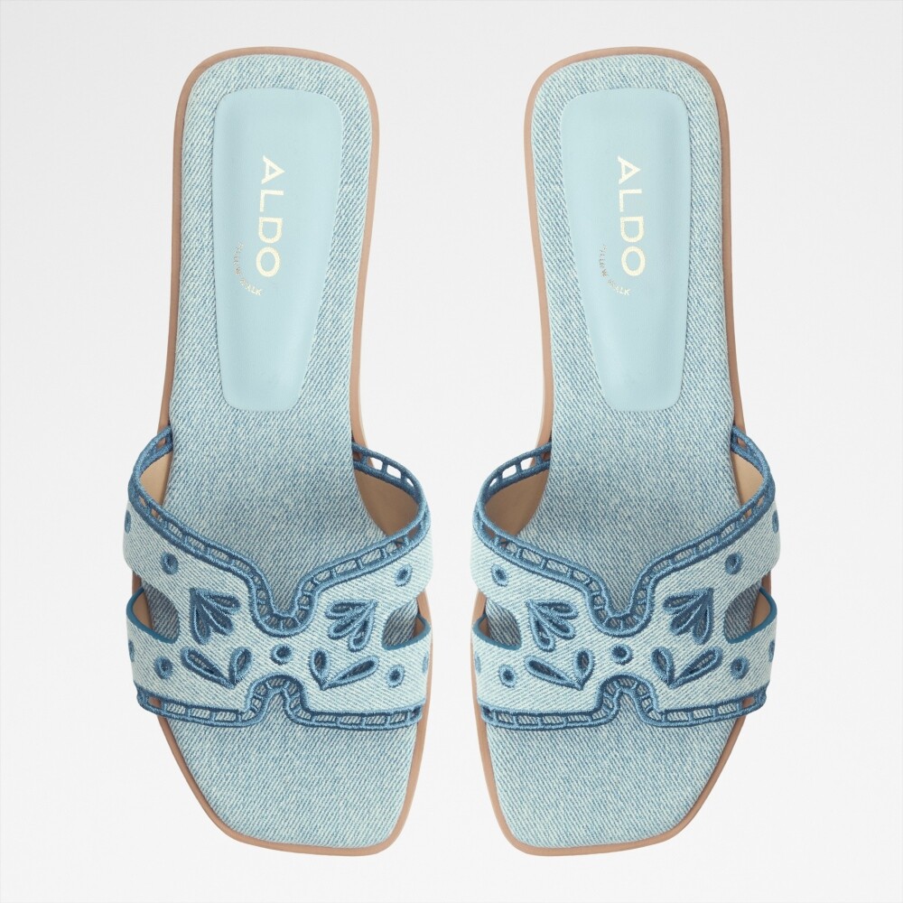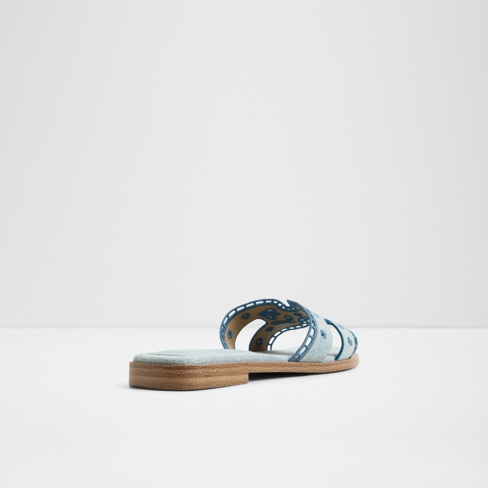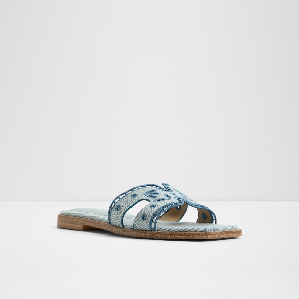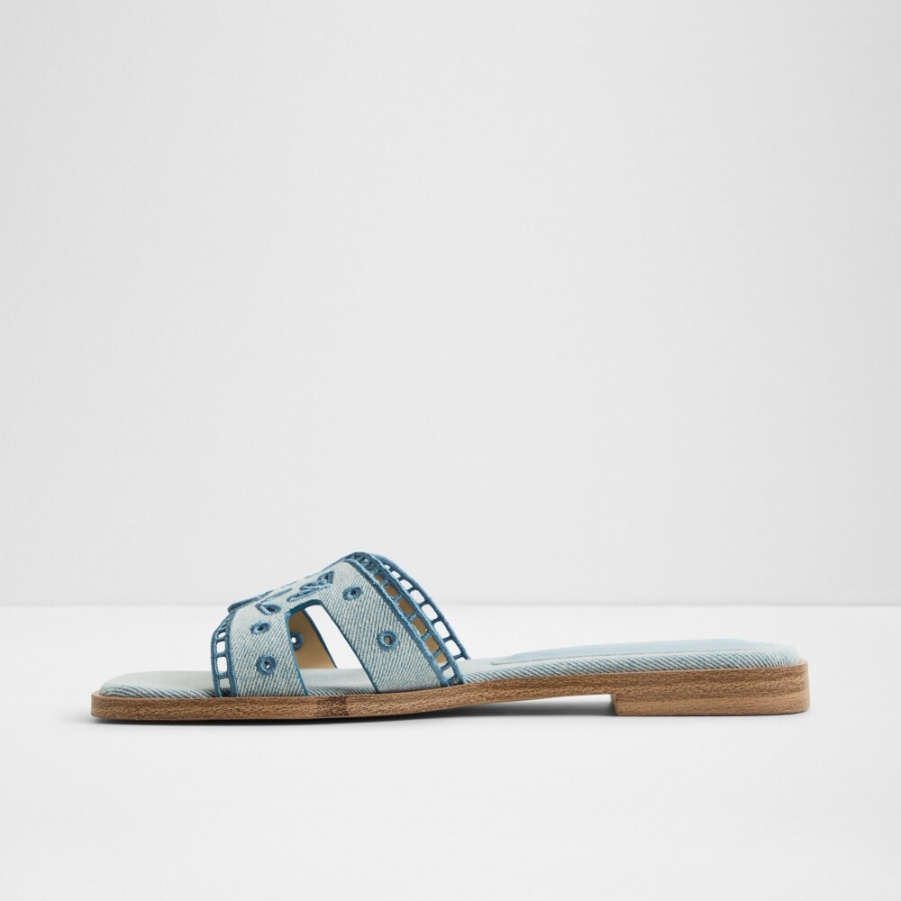 ● 時尚丹寧鏤空花紋平底涼拖鞋