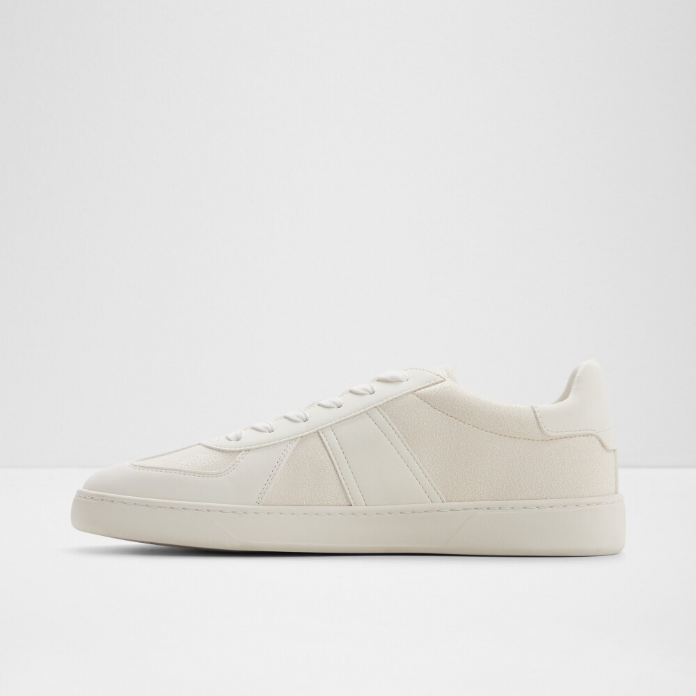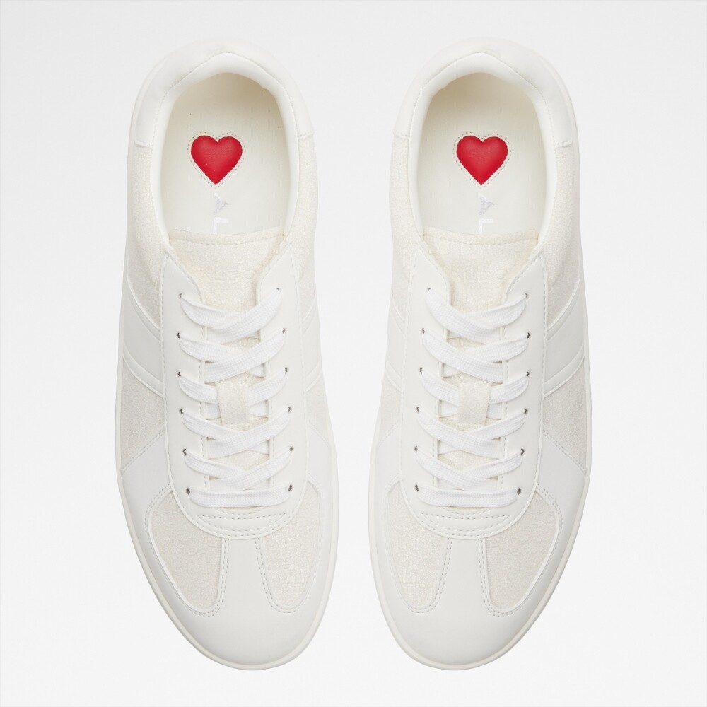 ● 時尚白色簡約綁帶休閒鞋,異材質圓頭拼接及愛心鞋墊