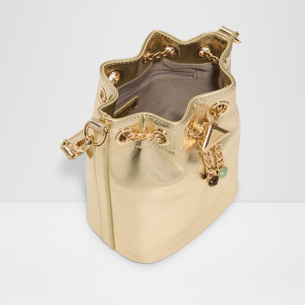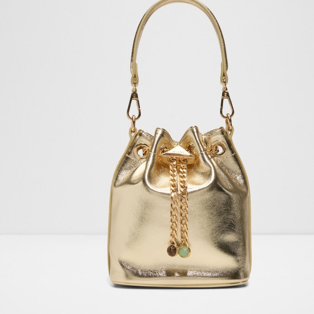 ● 時尚金屬光澤水桶包,是派對和正式場合的理想配件